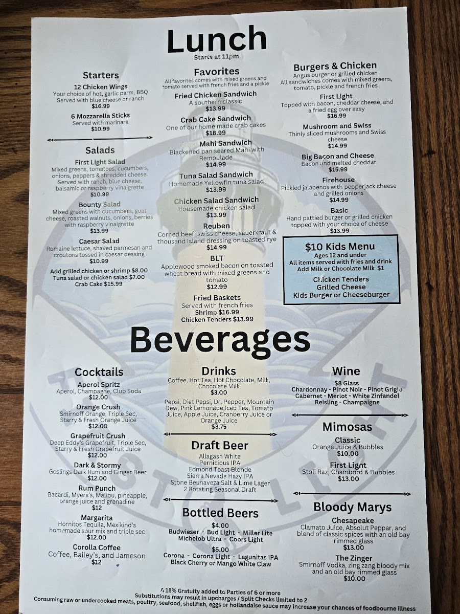 So when you find yourself in Corolla, be sure to pay a visit to First Light. Your taste buds will thank you, and you’ll leave with a smile on your face and a heart full of good memories.
